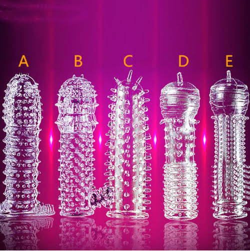 سلیکون اسپائکڈ کنڈومز لچکدار اور دوبارہ استعمال کے قابل مصنوعات ہیں جو خاص طور پر جنسی تعلقات کے دوران فریقین کی لذت کو بڑھانے کے لیے ڈیزائن کیے گئے ہیں۔ یہ کنڈومز عام طور پر میڈیکل گریڈ سلیکون یا TPE مواد سے بنے ہوتے ہیں، اور ان کی سطح پر ابھرے ہوئے ڈاٹس (Spikes/Dots) ہوتے ہیں جو ساتھی کو اضافی تحریک فراہم کرتے ہیں۔ یہ روایتی کنڈوم کی طرح حمل یا جنسی طور پر منتقل ہونے والی بیماریوں (STIs) سے تحفظ فراہم نہیں کرتے، بلکہ ان کا بنیادی مقصد جنسی تجربے میں شدت اور اطمینان لانا ہے۔ یہ آلات مختلف اشکال، لمبائیوں اور بناوٹ (جیسے تصویروں میں A، B، C، D، E کے مختلف ڈیزائن) میں دستیاب ہوتے ہیں، تاکہ صارفین اپنی پسند کے مطابق انتخاب کر سکیں۔