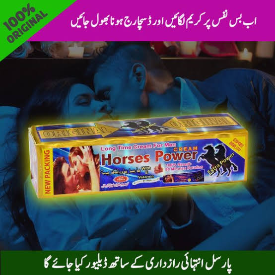 ہارس پاور کریم مردوں کے لیے ایک ایسی کریم ہے جسے جنسی تعلق کے دورانیے کو طویل کرنے (Long Time Cream) اور ایکسٹرا پاور فراہم کرنے کے لیے ڈیزائن کیا گیا ہے۔ یہ پروڈکٹ ‘نیو پیکنگ’ اور ‘اوریجنل’ کوالٹی میں پیش کی جاتی ہے، اور کچھ تصاویر میں “30 Minutes Duration” اور “2 انچ” تک فوائد کا دعویٰ کیا گیا ہے۔ اس کریم کا مقصد جلد انزال کے مسئلے کو حل کر کے، مردوں کو بستر پر دیر تک ساتھ دینے کے قابل بنانا ہے، جس سے وہ خود کو زیادہ پراعتماد محسوس کرتے ہیں اور پارٹنر کو زیادہ خوش کر سکتے ہیں۔ یہ بیرونی استعمال کی کریم ہے، جو اسے استعمال میں آسان اور براہ راست اثر انگیز بناتی ہے۔ یہ پروڈکٹ Valerian نامی جزو کے ساتھ بنائے جانے کا دعویٰ بھی کرتی ہے، جو اکثر جڑی بوٹیوں کی مصنوعات میں استعمال ہوتا ہے۔